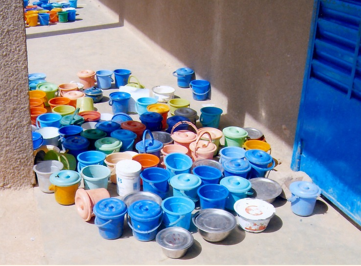1) Ici vous voyez les écuelles vides des enfants qui sont, chaque matin, disposées à l'entrée de chaque classe.